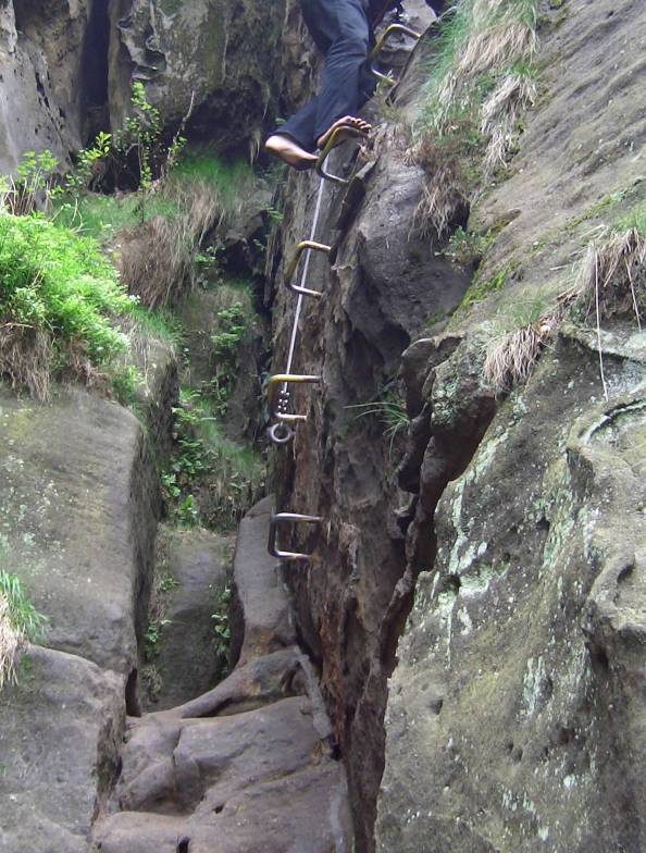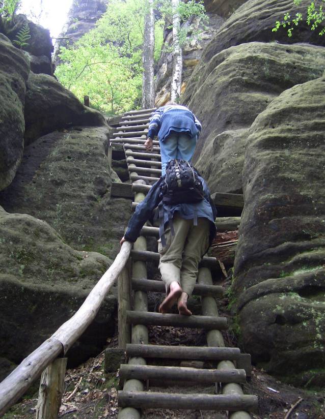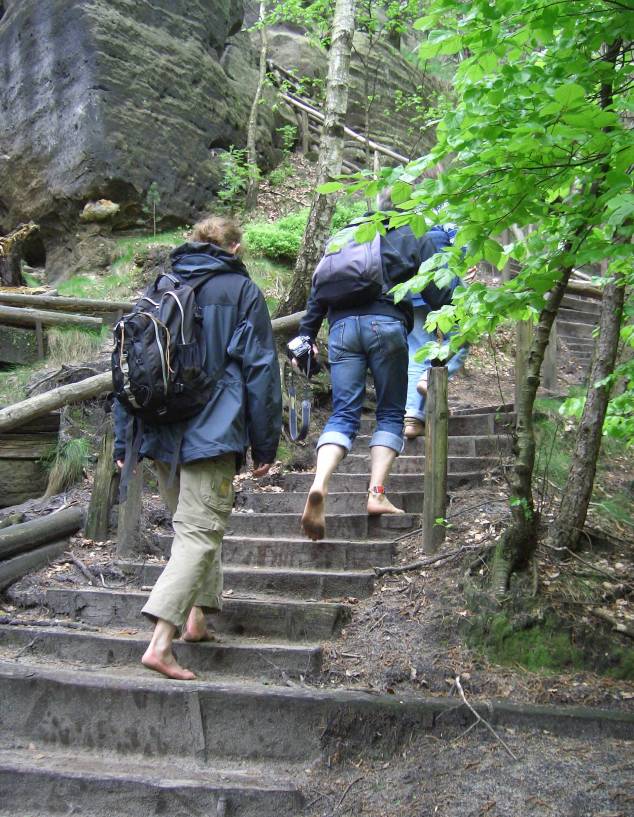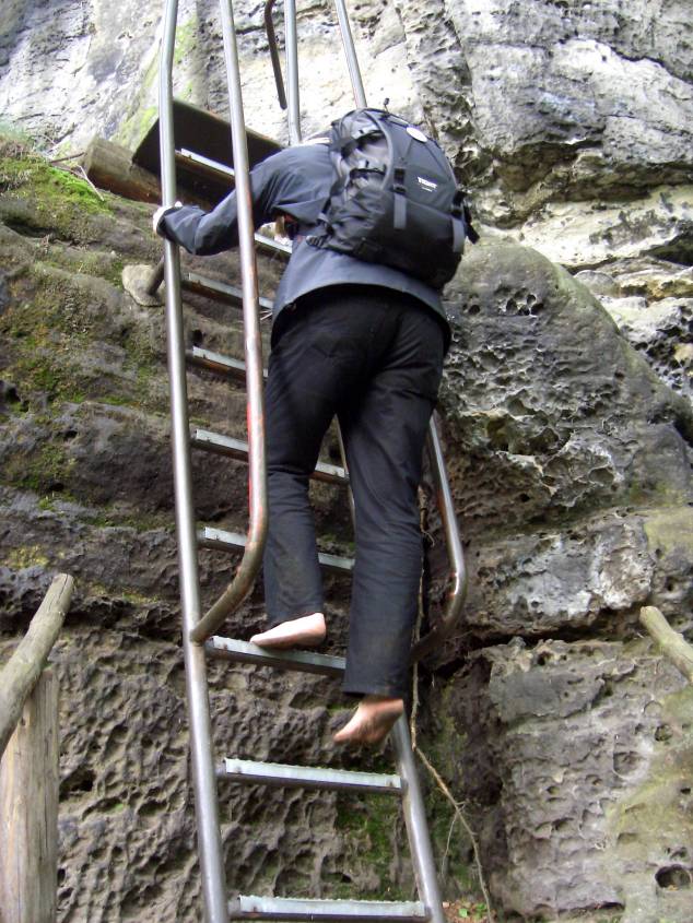 gut barfuß klettern und sich an den stähleren Trittstufen richtig mit den Zehen