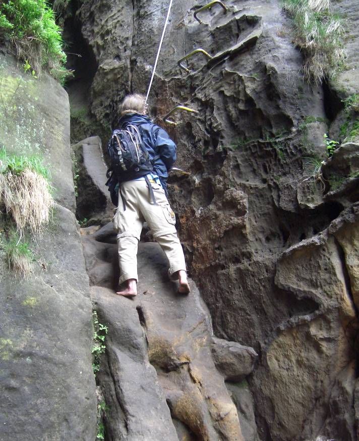 Und dann senkrecht den Felsen hinauf! Kein Problem, auf Sandstein kann man