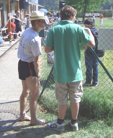 | Weltrekord-Barfußläufer Dietmar Mücke sah immer wieder nach dem Rechten und konnte sich davon überzeugen, dass auch die Reinigungskolonne ihren Dienst gewissenhaft versah. | ![]() |