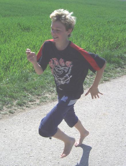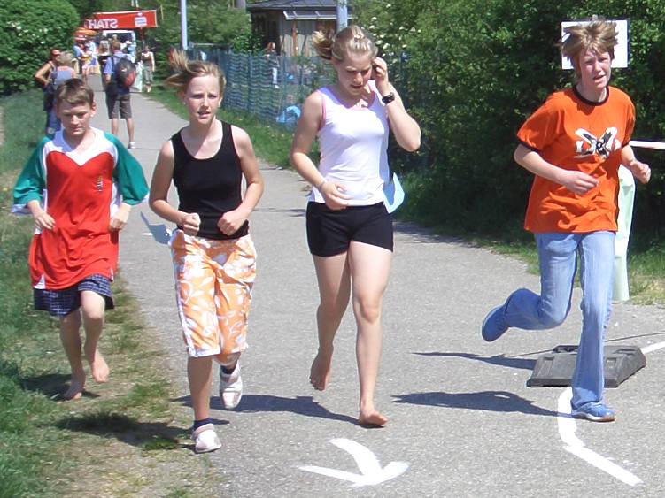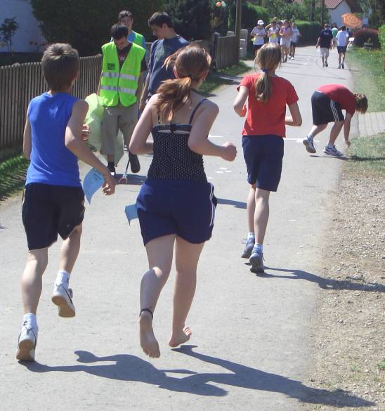 | Vor allem beim Glasscherbenlauf oder beim Sprint über den Rasenplatz wurden die Fußsohlen für die bevorstehende Herausforderung vorbereitet. Denn anschließend galt es, möglichst viele Kilometer zu laufen, um die Geldbeutel der Sponsoren ordentlich zu erleichtern. | ![]() |