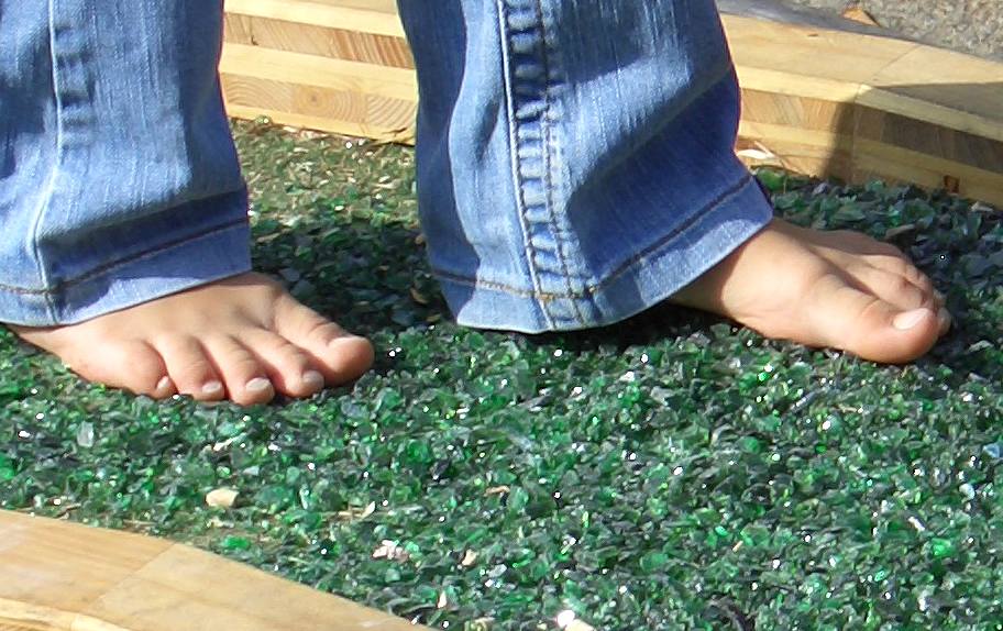 Während die jungeTänzerin auf dem Barfußpfad ihren eigenen